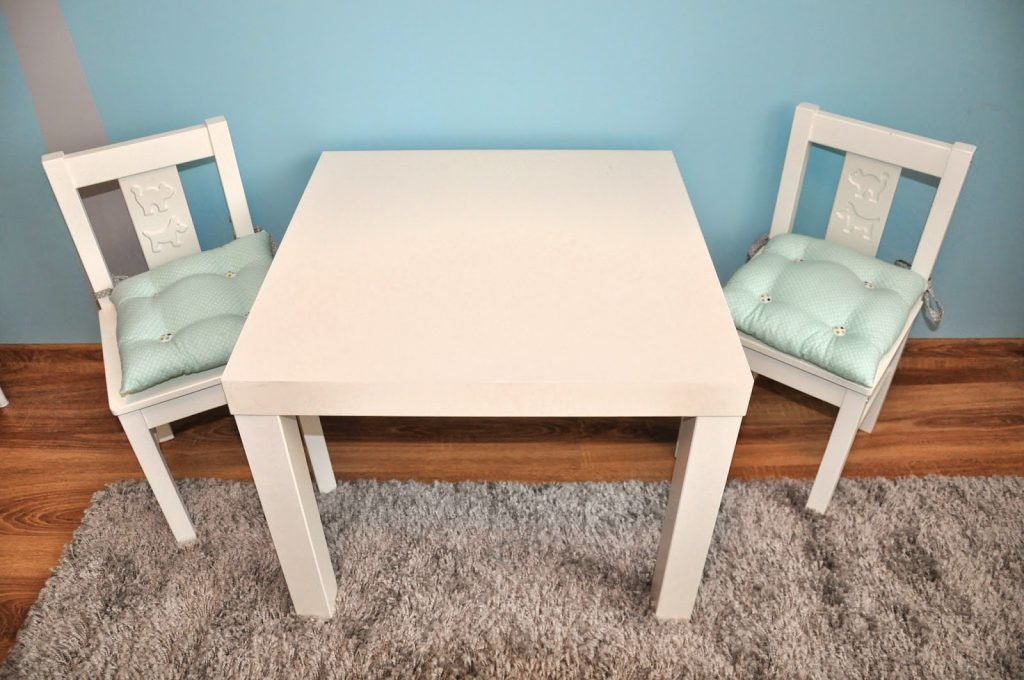 Urocza dekoracja malutkiego krzesełka – pikowana podusia z troczkami.