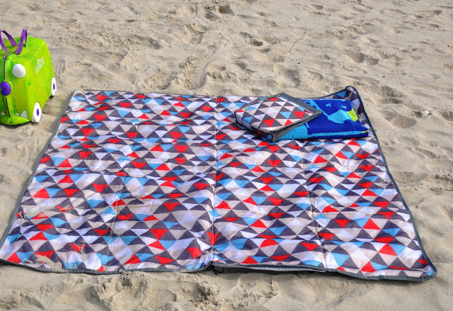 Żałuję, że nie trafiłam na ten koc wcześniej, zdecydowanie ułatwiłby nam wypoczynek. Ten kto stworzył go z pewnością niejednokrotnie spędzał czas na plaży i wiedział na co należy zwrócić uwagę.