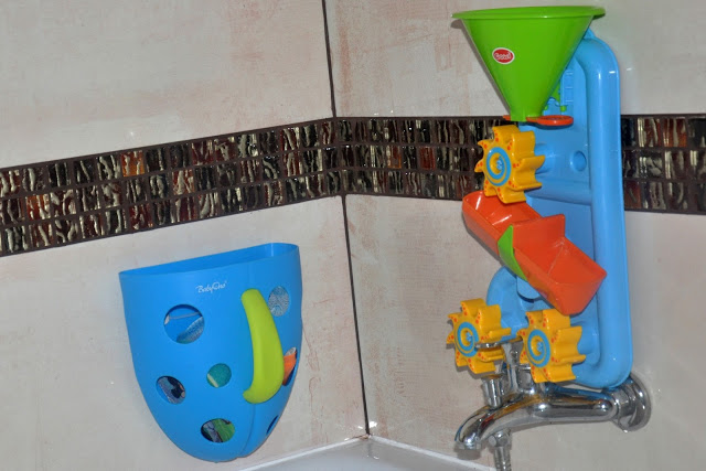 Całość uzupełniły jeszcze ręczniki, pufa-kosz na pranie, kosmetyki i oczywiście zabawki dziecka – teraz widać, że łazienka jest do korzystania, a nie tylko oglądania 🙂
