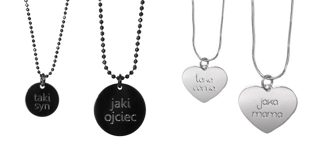 srebrne naszyjniki oraz bransoletki dla mamy i córki oraz dla taty i syna. Na