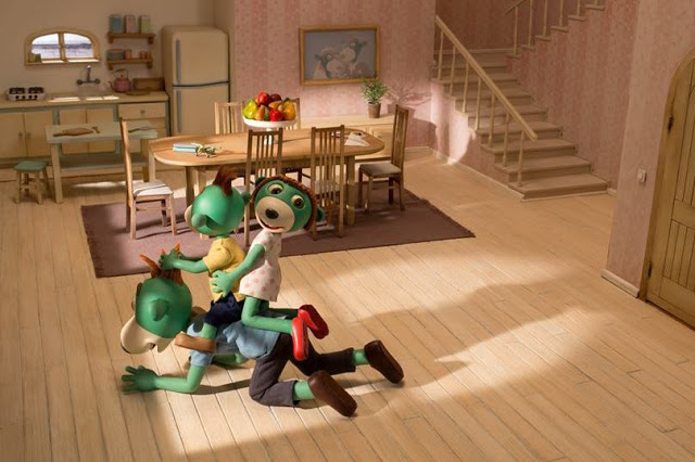 także Cioci, Małego Wujcia i Sąsiada Robota. Dzieci śledząc przygody zielonych