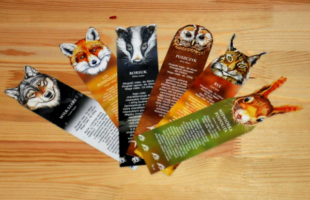 Motywy zwierząt, owadów czy roślin występują też w kolorowankach, wyklejankach i przepięknych zakładkach do książek. Na każdej zakładce oprócz wizerunku zwierzątka jest jego nazwa i krótki opis z najciekawszymi informacjami.