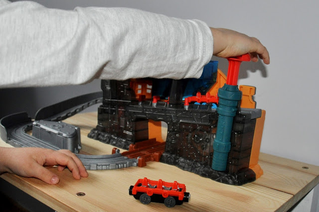 „Wystarczy załadować trzy części lokomotywki do trzech otworów na daszku fabryki i umieścić podwozie na platformie. Naciśnij tłok raz, aby podwozie ruszyło po linii montażowej, a następnie trzykrotnie, by rozpocząć montaż. Lokomotywka ruszy przez fabrykę, a uchwyty upuszczą na podwozie poszczególne części! Ostatnie pociągnięcie za rączkę obniży prasę, która dociśnie wszystkie elementy do podwozia”.