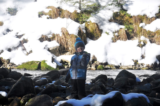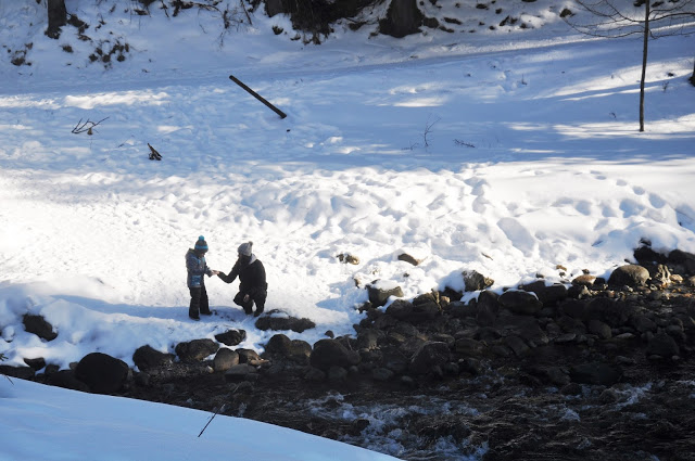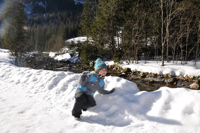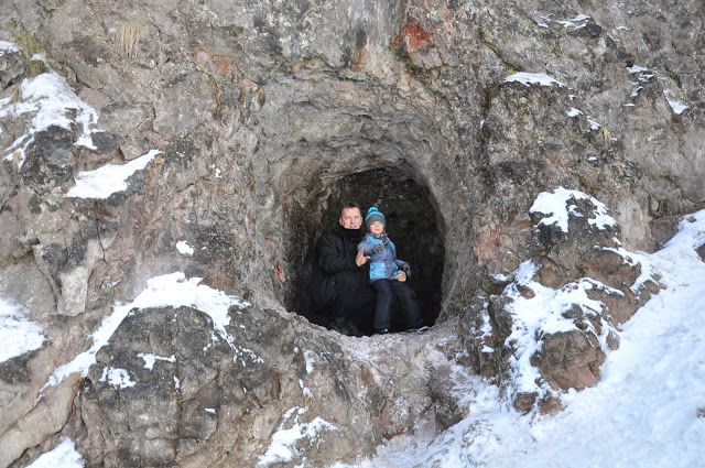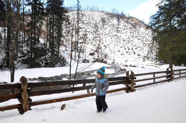 Dolina Kościeliska jest niezwykle piękna. Ogromne, zbójnickie skały, towarzyszący nam górski potok, rozległe polany, strumyki i maleńkie wodospady sprawiały, że z każdym krokiem zachwycaliśmy się nią coraz bardziej. Szliśmy do przodu, nawet nie myśląc o powrocie. Ale co najważniejsze – Juluś był tak samo zachwycony jak my! Skakał w śniegu, zbierał kamyki przy potoku, zaglądał z tatą do niewielkich jaskiń, wymyślał własne nazwy dla skał. I był bardzo szczęśliwy, że jesteśmy wszyscy razem. My też 🙂