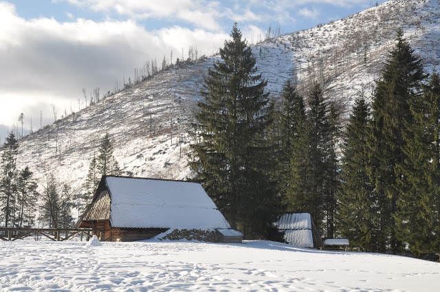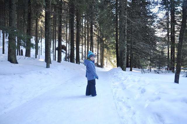 Pomyślałam, że dobrze będzie jak dojdziemy do bacówki, oddalonej około 1 km od parkingu. Kiedy tylko wyruszyliśmy, przeszliśmy kilka kroków i już byliśmy na miejscu. Droga minęła nam błyskawicznie, a to dlatego, że była tak przyjemna. Za wcześnie, żeby wracać 🙂 W razie czego mieliśmy sanki dla Julcia.