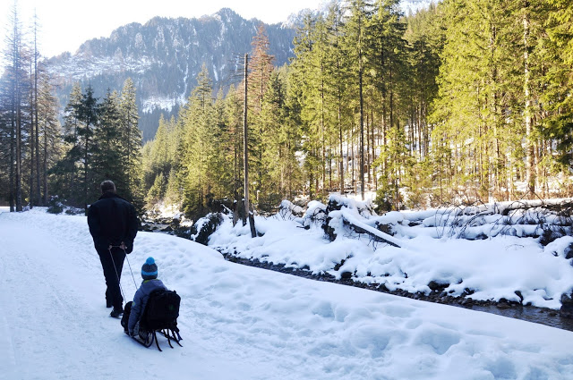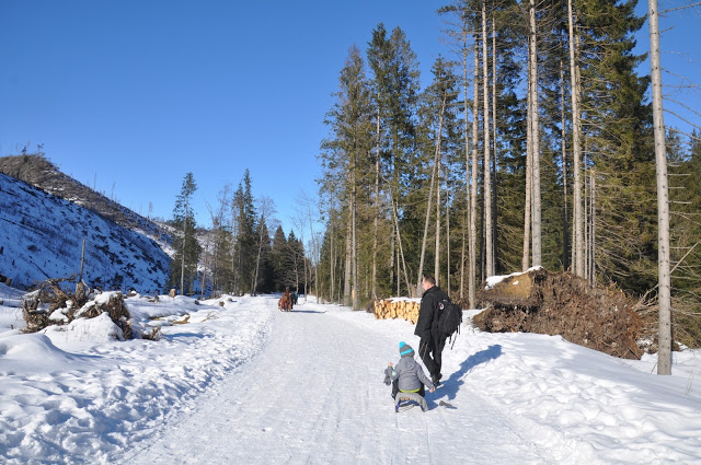 Kilka tygodni przed wyjazdem w Tatry wiedzieliśmy, że odwiedzimy Dolinę Kościeliska. Zachwyciły mnie te wszystkie pocztówkowe krajobrazy i zachęcały relacje rodziców spacerujących z maluchami w wózkach. Bałam się jedynie odległości. Prawie 6 km do schroniska wydawało się być niemożliwe do przejścia z czterolatkiem, szczególnie zimą. A potem jeszcze kolejne 6 km powrotu tą samą drogą…