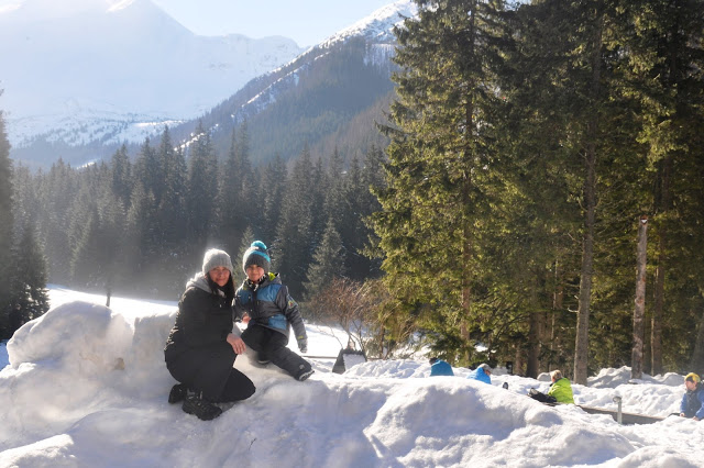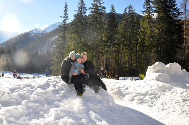 Zabawa na śniegu, w tle cudne szczyty Tatr, grzejące słoneczko, obiad na stole i pyszna szarlotka.