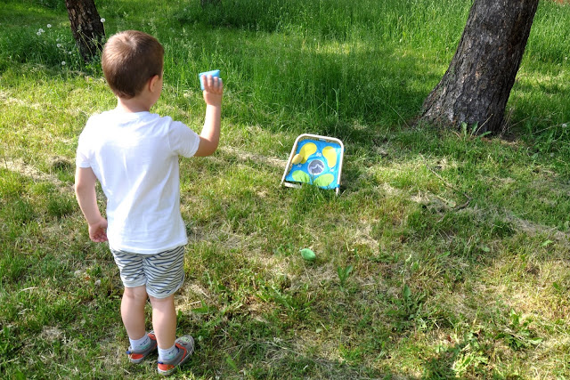 Tarcza, do której rzuca się woreczki – to bardzo fajna i rozwijająca zabawka, która nie tylko bawi dzieci (i rodziców!), ale też pozwala ćwiczyć koordynację ruchową, zwinność, spostrzegawczość i zachęca do strategicznego myślenia. Zasady są bardzo proste: rzucamy miękkie woreczki do tarczy i zbieramy punkty 🙂