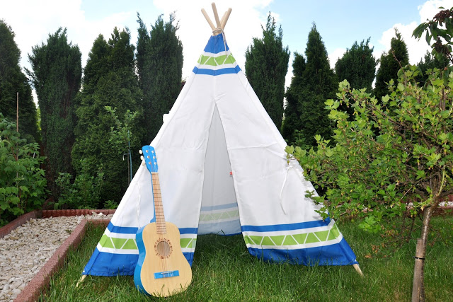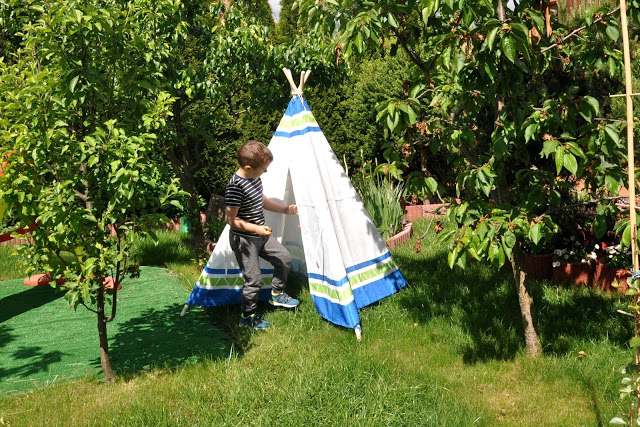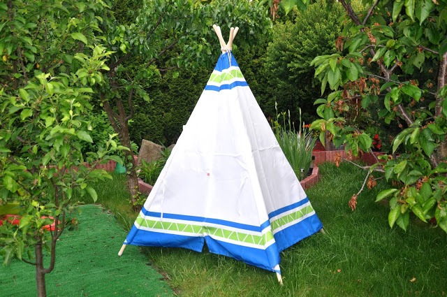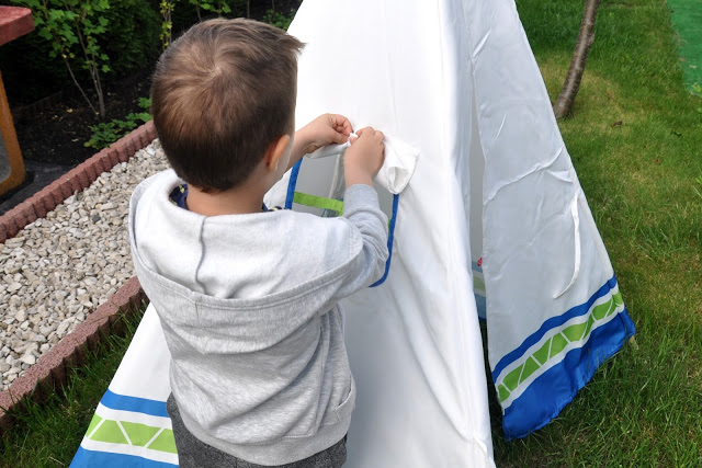 Wybór padł na przepiękny namiot jednej z moich ulubionych marek – Hape. Tipi jest świetną skrytką podczas zabawy w chowanego, „bazą” do odpoczynki i miejscem, w którym Julcio zwyczajnie się bawi. Namiot chroni przed wiatrem i słońcem, a okienko umieszczone na jednej ścianie umożliwia stały dostęp świeżego powietrza. Wygląda świetnie, jest duży, wygodny i daje wiele możliwości wesołej zabawy.