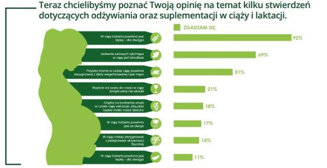 że przyszła mama powinna zrezygnować z diety wegetariańskiej (51%). Zdaniem