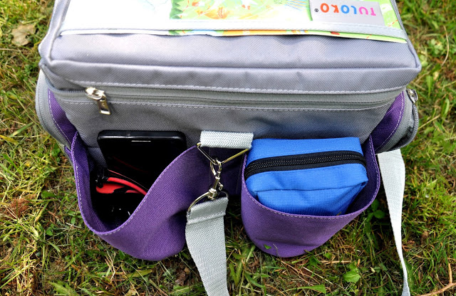 przestrzeń. Są też dwie kieszenie na napoje, dwie kieszenie boczne na suwak, jedna kieszeń z