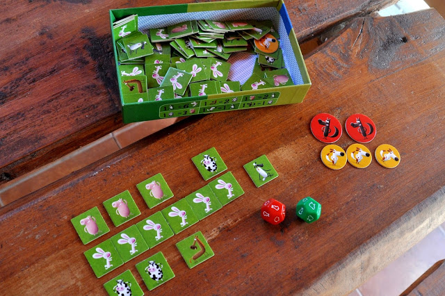Grę Superfarmer ja sama znałam z dzieciństwa i bardzo się ucieszyłam, że spodobała się też Julkowi. Dzięki temu również ja mogłam uatrakcyjnić sobie podróż hodując zwierzęta. A kiedy już byliśmy na miejscu i odpoczywaliśmy na kocu pomiędzy kolejnymi kąpielami w basenie czy na werandzie przed pokojem, to i dzieci i dorośli świetnie się bawili zdobywając kolejne zwierzęta do swojej farmy.