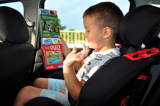 Nie zawsze jednak możemy wyjechać kiedy na zewnątrz robi się ciemno i niejednokrotnie ruszamy w dzień. Wtedy sowa: „Daleko jeszcze?”, „Już nie mogę wytrzymać” czy nawet „Wracajmy do domu” słyszymy bardzo często. I pomimo tego, że mamy już jakieś wypracowane metody i sposoby na wszystko, to nigdy nie mamy rozwiązania, które pozwoliłoby nam na uniknięcie chociażby jednego pytania. Nawet nie wierzę, że ktoś jest w stanie coś wymyślić ;)Póki co ratujemy się kilkoma metodami, gadżetami i wspomagaczami 🙂 Nawet, jeśli nie unikniemy marudzenia, to zawsze je zminimalizujemy. Podczas ostatnich wyjazdów naszą tajną bronią w samochodzie były gry podróżne Granna i przyznaję, że sprawdziły się świetnie – nie tylko podczas podróży.
