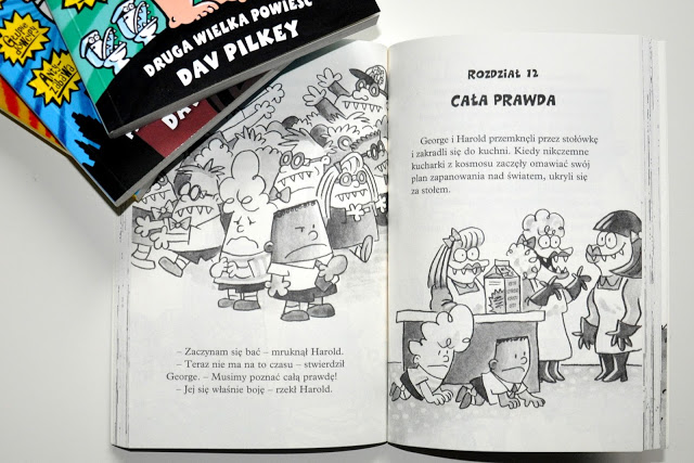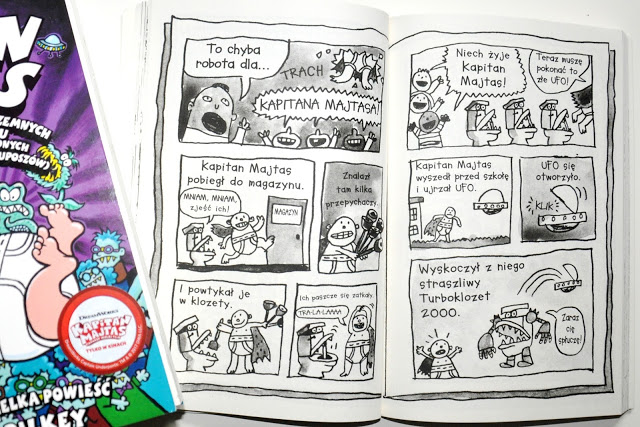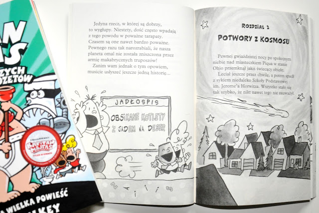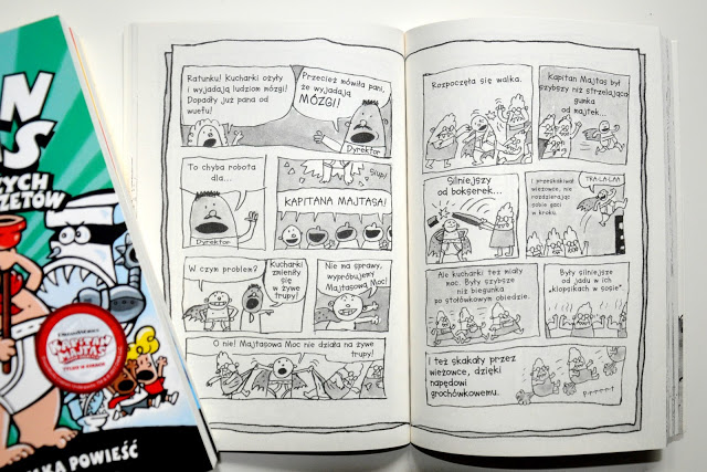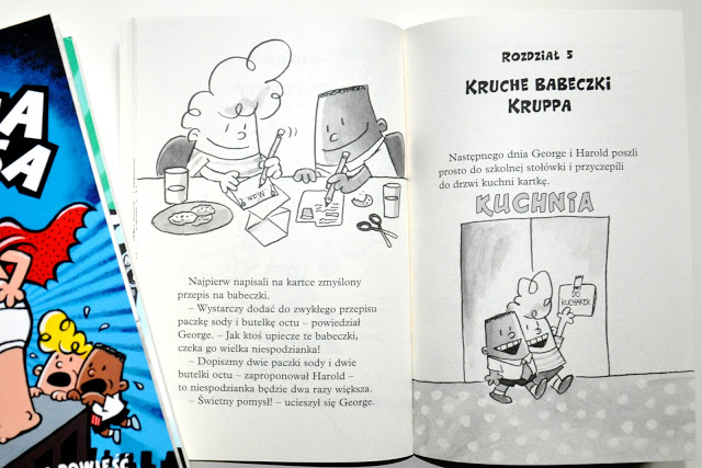 Co robią chłopcy? Hipnotyzują dyrektora i zamieniają go w bohatera swojego komiksu – Kapitana Majtasa. I w tym momencie zaczynają się kłopoty 🙂