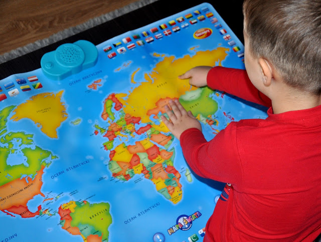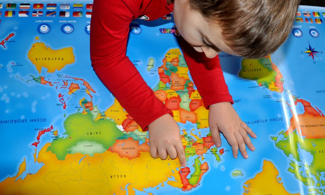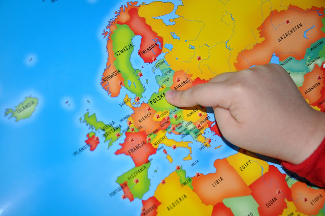 Taka mapa pojawiła się również w naszym domu i od razu zabrała mi dziecko w podróż dookoła świata!