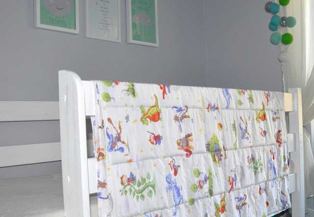 Sama nazwa kołdra obciążeniowa nie kojarzyła mi się zbyt dobrze. Wydawało mi się, że są to ciężkie i brzydkie kołdry. Rzeczywiście nie są lekkie, ale są bardzo ładne. Kupując kołdrę nie tylko podajemy masę ciała dziecka czy dorosłego, ale tez wzór materiału w jakim chcemy mieć pościel. A wybór jest naprawdę duży. Julcio ma jasną, bajkową pościel – jest na niej kot w butach, król i rycerz walczący ze smokiem. Już nie jedną bajeczkę sobie opowiedzieliśmy patrząc na kołderkę. Nasza duża kołdra jest równie ładna – to łapacze snów, które rzeczywiście pomagają nam lepiej spać 🙂