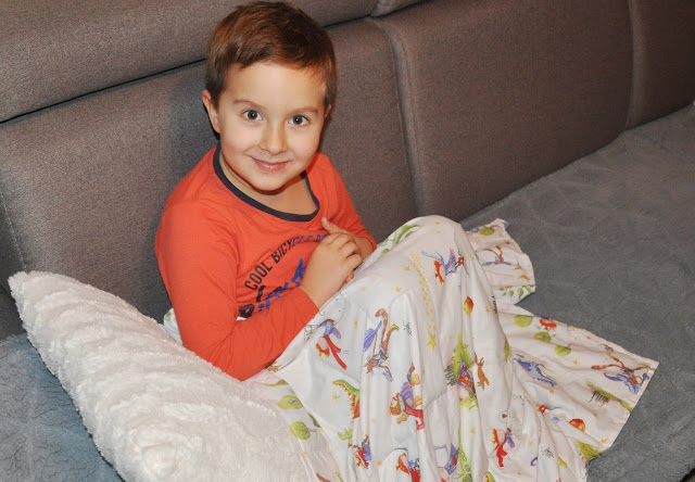 Przyznam, że my wcale nie rezygnujemy z naszej tradycyjnej pościeli. Teraz korzystamy zarówno z klasycznych kołder, jak i tych sensorycznych. Ze względu na to, że można ich używać i w dzień i w nocy, staramy się z nich korzystać o różnych porach dnia. Juluś często odpoczywa pod cięższą kołderką i zazwyczaj to właśnie pod nią zasypia. Po jakiś 2 godzinach (kiedy sama kładę się spać) zamieniam pościel i okrywam synka lżejszym nakryciem. Również w ciągu dnia kiedy ogląda bajkę, słucha opowieści czy podczas drzemki, okrywam go kołderką Senso – Rex.