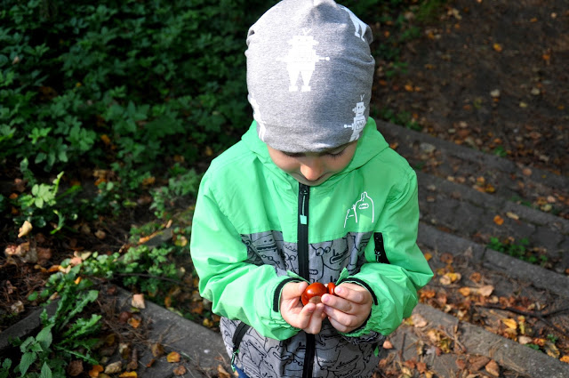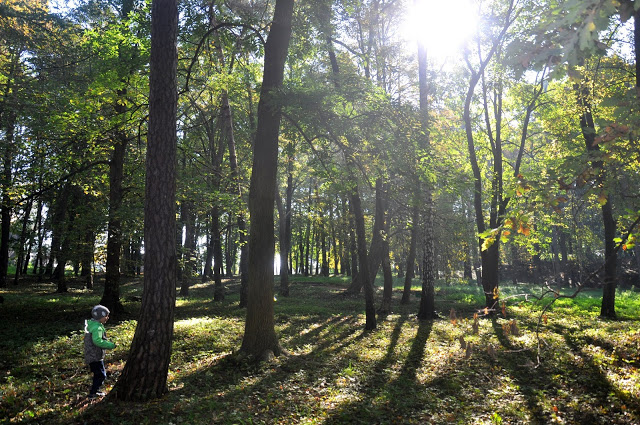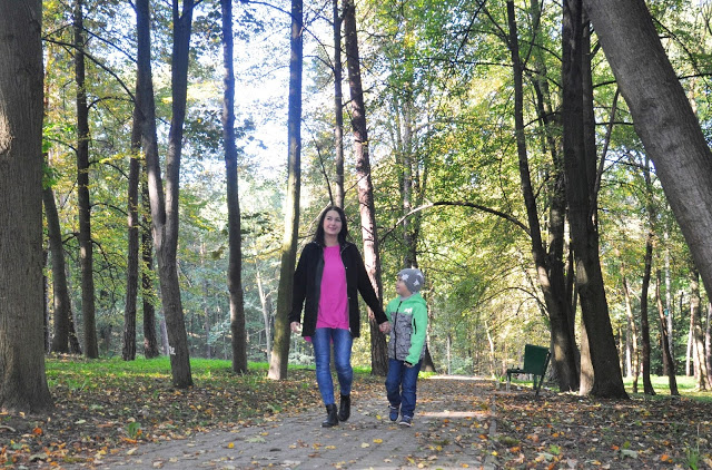 Jesienne spacery są zupełnie inne niż te pozostałe. Ulice są pełne kolorów, a skarby natury możemy zbierać nie tylko w parku. Chodzimy po kasztany, żołędzie, jarzębinę i wyjątkowo pachnące, szeleszczące liście. Nieraz wiewiórka przebiegnie nam drogę, a my skaczemy z radości. Mieszkamy bardzo blisko parku, a odwiedzamy go przeważnie jesienią. Wiosną, zimą, latem częściej chodzimy do lasu – a nasz park skrywa tyle piękna! Dziś po raz kolejny doceniłam to miejsce.