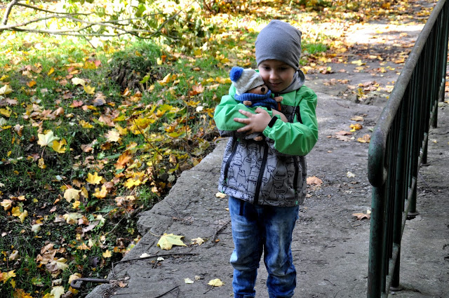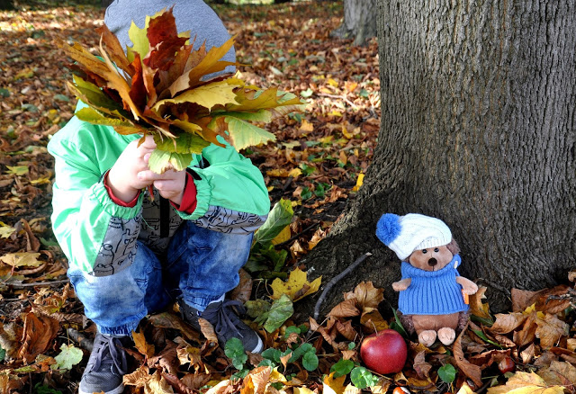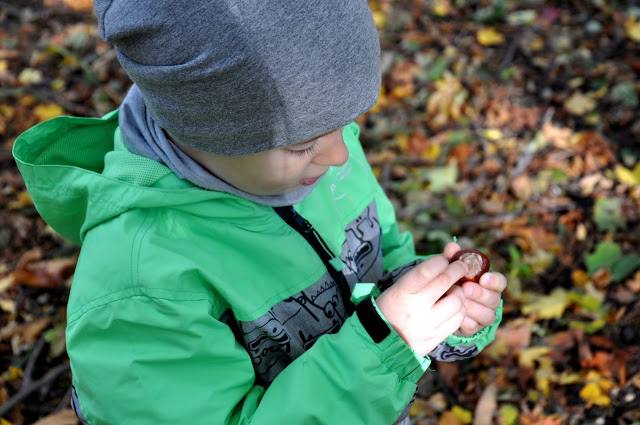 Ostatni weekend był wyjątkowo ładny i nie mogliśmy zrezygnować z jesiennego spaceru. Wybraliśmy sie do parku, który o tej porze roku jest wyjątkowo piękny. Zbieraliśmy kasztany, żołędzie, kolorowe liście, spacerowaliśmy, rozmawialiśmy, przyglądaliśmy się dżdżownicom i kowalom bezskrzydłym na drzewach, słuchaliśmy ptaków i szukaliśmy śladów zwierząt.