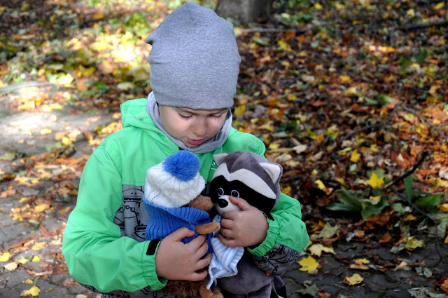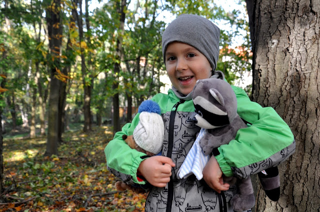 W parku nie byliśmy sami 🙂 Towarzyszyły nam urocze pluszaki Orange Toys – jeżyk i szop pracz, zwierzątka, które można spotkać w polskich lasach i parkach. Ja się w nich zakochałam, kiedy tylko otworzyłam przesyłkę, a maleńki jeżyk w sweterku stał się ulubioną maskotką Julusia 🙂