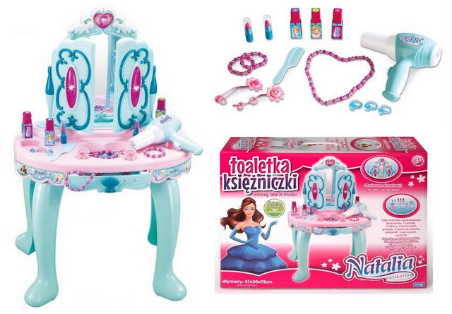 Inną propozycją na prezent dla dziewczynki jest interaktywna toaletka księżniczki. Podświetlane na różowo lustro, magiczne dźwięki, prawdziwa suszarka i akcesoria: grzebień, szminki, lakiery do paznokcie, gumki do włosów, pierścionki i naszyjniki sprawią, że ich właścicielka poczuje się prawdziwą damą.