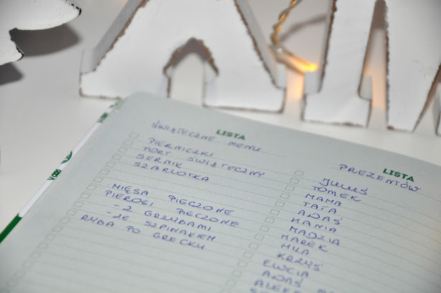 MAM Planner do torebki jest tylko mój i mam go zawsze przy sobie 🙂 To w nim znajdują się najważniejsze listy: lista potraw do przygotowania, lista prezentów, lista kartek świątecznych czy lista zakupów – nie da się ukryć, to wszytsko jest na mojej głowie ;/ Żadna z nich nie jest jeszcze w pełni gotowa, ale jest stale uzupełniana. Pracuję jeszcze nad listą porządków i lada moment się w nim pojawi.