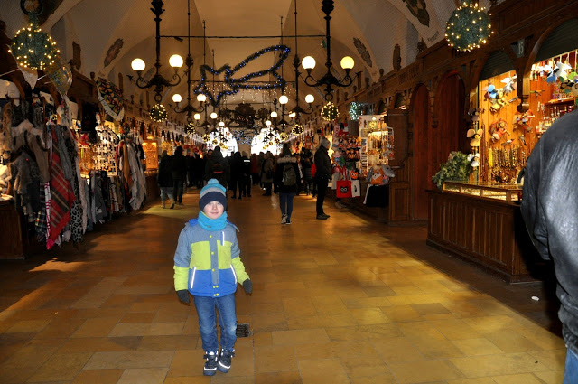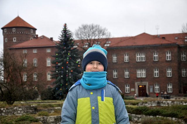 Jadąc do Krakowa mieliśmy też zaplanowaną wizytę u Smoka Wawelskiego. Spacerując najróżniejszymi alejkami i uliczkami odkrywaliśmy szopki krakowskie, Rynek Główny, Sukiennice i wreszcie wzgórze Wawelskie, a na nim Zamek Królewski. Wszystko to wcześniej widzieliśmy w mniejszej wersji w HistoryLandzie. Niestety Smocza Jama w sezonie zimowym jest nieczynna i nie zeszliśmy do smoka, ale wiosną z pewnością tu wrócimy. Sam spacer po centrum Krakowa był bardzo fajną przygodą dla nas dwojga! Często się zatrzymywaliśmy i robiliśmy zdjęcia – Julcio chciał wszystko pokazać później tacie 🙂