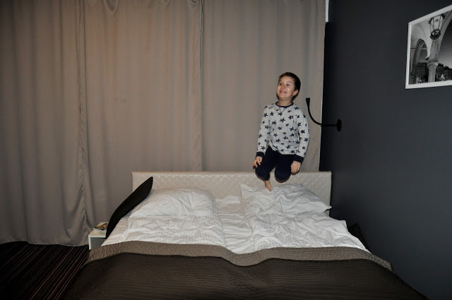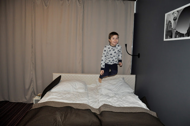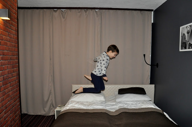 Do pokoju hotelowego wróciliśmy, kiedy było już ciemno. Byliśmy bardzo zmęczeni, ale przede wszystkim bardzo zadowoleni z wycieczki 🙂 Julcio szybko się umył, założył piżamkę i….zamiast położyć się i odpocząć, nabrał nowej energii skacząc na wielkim, miękkim łóżku 🙂