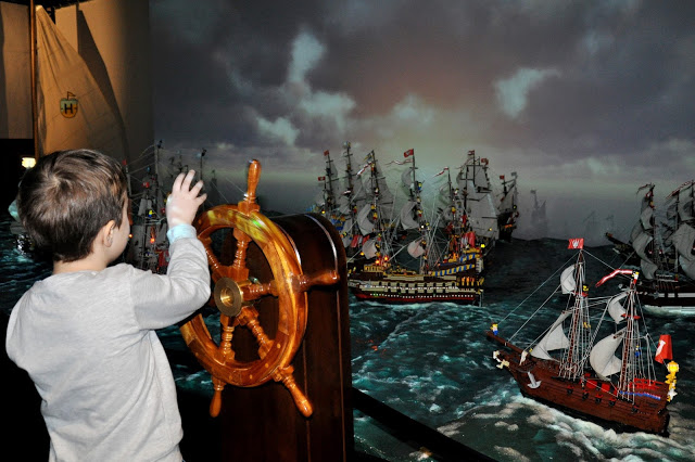 Przyznaję, że historia nigdy nie była moją mocną stroną i nigdy jakoś szczególnie mnie nie interesowała, ale w HistoryLandzie z przyjemnością oglądałam animacje i pokazy obrazujące wydarzenia sprzed lat. Interaktywna podróż przez dzieje Polski z pewnością jest warta zobaczenia, ale muszę stwierdzić, że niekoniecznie dla 5-latka. Julciowi bardzo się tu podobało i sam był pod wrażeniem makiet zbudowanych z klocków Lego, ale bardzo szybko chciał uciekać do kolejnych prezentacji. Nie powinno być w tym nic dziwnego – dziecko w wieku przedszkolnym bardziej interesują same zabawki, a nie oglądanie Bitwy pod Grunwaldem czy Obrony Westerplatte – choć ta jak dla mnie była przedstawiona bardzo fajnie! Julka najdłużej zatrzymała „Bitwa pod Oliwą”, a wszystko dzięki temu, że sam mógł chwycić za ster i kierować statkiem.