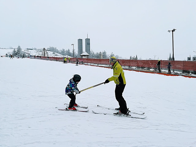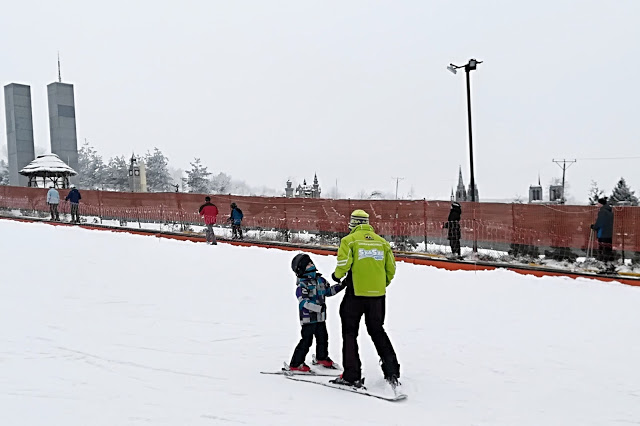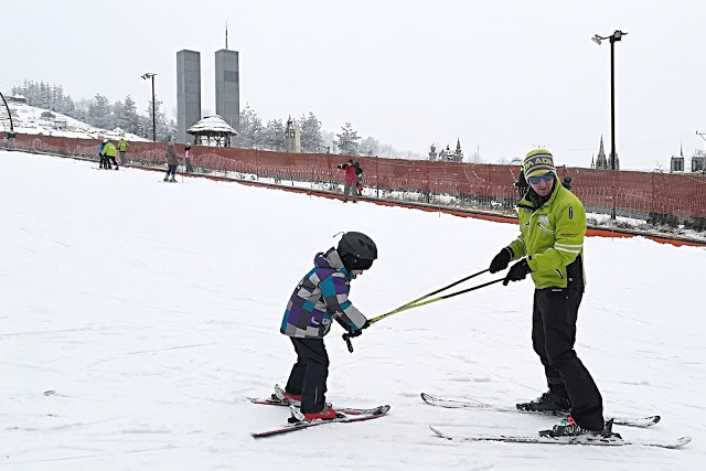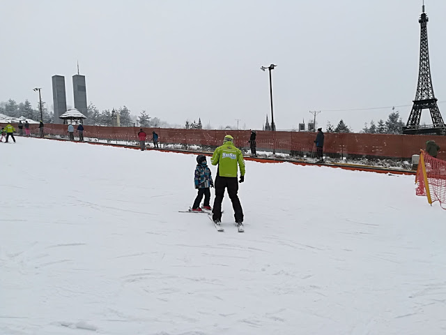 Dzięki instruktorom z działającej tu Szkoły Narciarskiej Sky Ski Sądek, Julcio odbył swoją pierwszą, prawie godzinną lekcję jazdy na nartach. Pomimo tego, że instruktor miał bardzo fajne podejście do dziecka, mieli fajny kontakt i Julciowi już całkiem nieźle szło, to jednak nie załapał przysłowiowego bakcyla do nart. Póki co zostajemy przy saneczkach, a za jakiś czas, jeśli tylko będzie chciał znów spróbujemy z nartami.