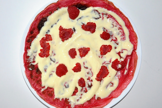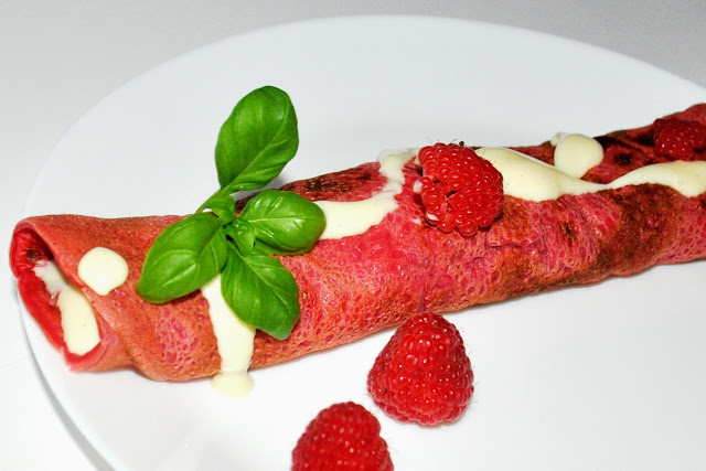 Jedliśmy je z dżemem, ale też w bogatszej wersji 🙂 Naleśnik smarujemy serkiem waniliowym, układamy malinki, zwijamy i w kilka minut zjadamy mając nadzieję na dokładkę 🙂