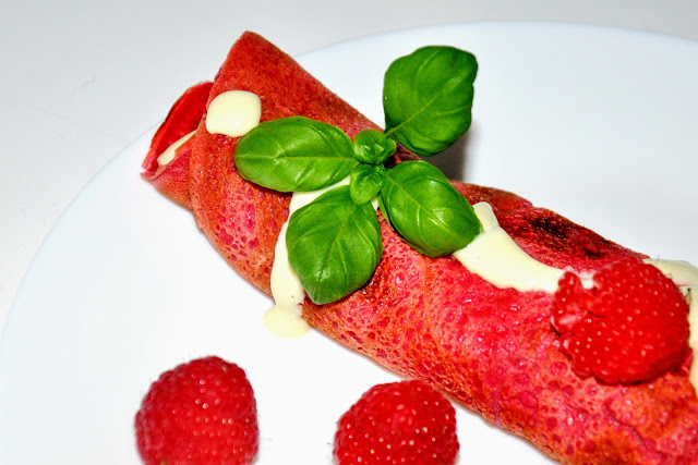 Próbowaliśmy takich naleśników w dwóch wersjach. W pierwszej posmarowaliśmy cienko placek dżemem malinowym, dodaliśmy świeże malinki i zawinęliśmy w rulon. W drugiej posmarowaliśmy naleśnik budyniem czekoladowym i dodaliśmy kawałki banana – i to był hit!