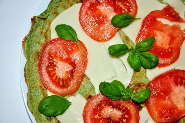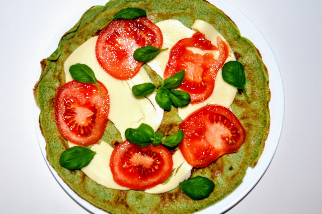 Można je jeść na słodko, np. z dżemem owocowym, ale też w wersji wytrawnej. Ja wybrałam tę drugą. Na każdym placku ułożyłam ser mozzarella, pomidorki, bazylię i całość zwinęłam w rulon.