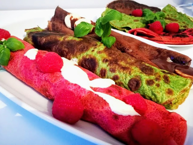 Wszystkie naleśniki powstały na bazie klasycznego ciasta naleśnikowego, które po przygotowaniu przelałam do trzech misek. Żeby nadać plackom koloru i witaminek dodałam do każdej miseczki coś innego – zobaczcie sami!