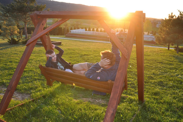 Zamieszkaliśmy w bardzo klimatycznym, drewnianym domku, w którym było znacznie więcej niż oczekiwaliśmy. Na parterze domku znajduje się salon z dużym narożnikiem, aneksem kuchennym i łazienką, a na górze jest sypialnia z dużym podwójnym łóżkiem i dwoma pojedynczymi. Jest też internet i telewizja satelitarna, ale za tym akurat nie tęskniliśmy :)Większość dnia spędzaliśmy na zwiedzaniu i wędrówkach po Bieszczadach. Po powrocie do Równi odpoczywaliśmy na huśtawce, cieszyliśmy się przepięknym zachodem słońca, oglądaliśmy kaczki pływające w stawie, a wieczorem graliśmy w  gry i leżeliśmy przy rozgrzanym kominku. Czy można chcieć więcej?! :)Na bardzo dużym, zadbanym zielonym terenie ośrodka znajdują się domki, apartamenty, restauracja, a w niej naprawdę przyjemny kącik zabaw dla dzieci i sala kominkowa. Jest też sala konferencyjna, całoroczne jacuzzi, sucha sauna, miejsce na grilla i na ognisko, a latem działają tu dwa baseny zewnętrzne. Przy placu zabaw są ławeczki, a w pobliskim stawie poza kaczkami pływają pstrągi! Przyjeżdżając tu w sezonie można na miejscu wypożyczyć rowery górskie i trekkingowe dla całej rodziny, a jeździć naprawdę jest gdzie – w sieci znajduje się bardzo dużo mapek z różnymi bieszczadzkimi trasami rowerowymi.
