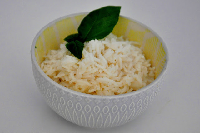 Do garnka z wrzącą wodą i odrobiną soli wsypujemy ryż basmati i gotujemy około 12 minut, następnie odcedzamy i wykładamy na talerz.