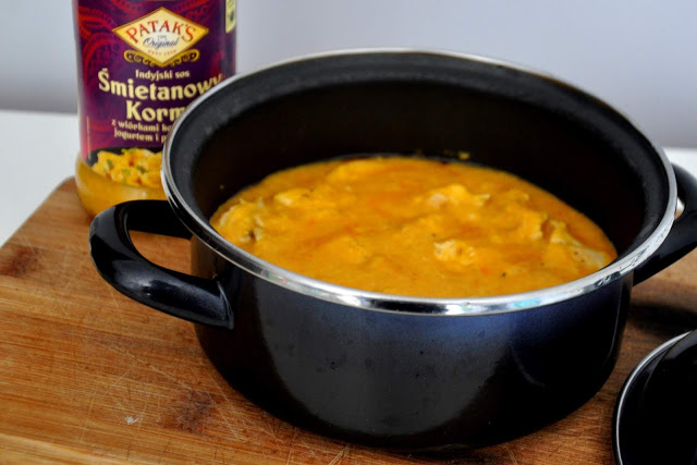 Przyznaję się, że poszłam na łatwiznę i wykorzystałam gotowy sos śmietanowy korma Patkas, ale wybrałam takie, który nie tylko w pełni oddaje smak Indii, ale przede wszystkim nie zawiera konserwantów, barwników, ani sztucznych aromatów.