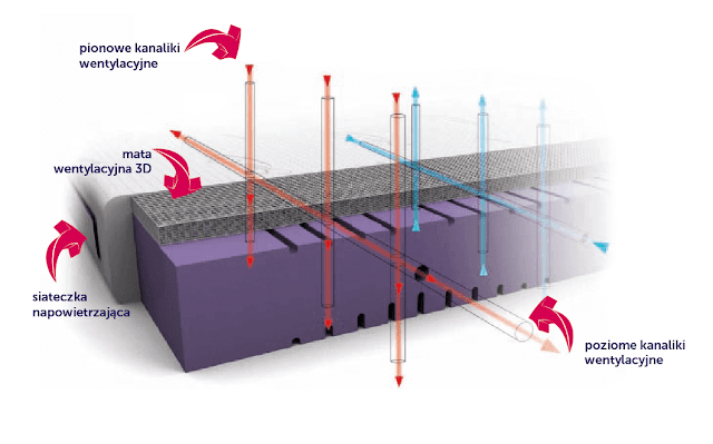 Odpowiedni system wentylacji materaca nie tylko zapewnia stałą cyrkulację powietrza, ale przede wszystkim zmniejsza ryzyko rozwoju bakterii, grzybów i pleśni w jego wnętrzu.