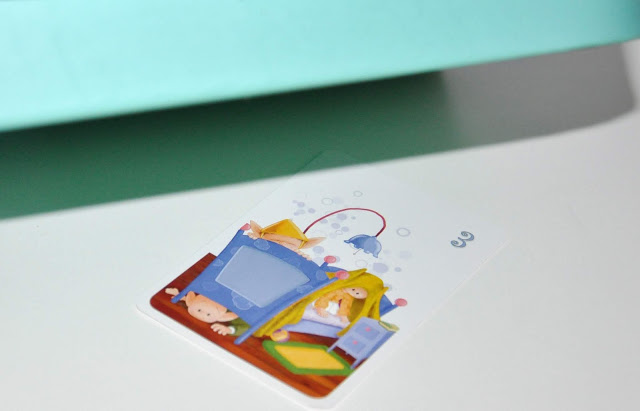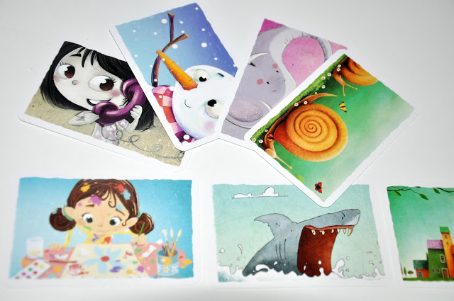W zestawie znajdują się trzy rodzaje kart: jedne z przepięknymi grafikami, drugie z dwoma kolorami i trzecie z różnymi symbolami. Gra polega na łączeniu kart, wybieraniu obrazków ze wspólnymi cechami i zdobywaniem punktów 🙂 Bardzo fajna zabawa nie tylko dla dzieci 🙂