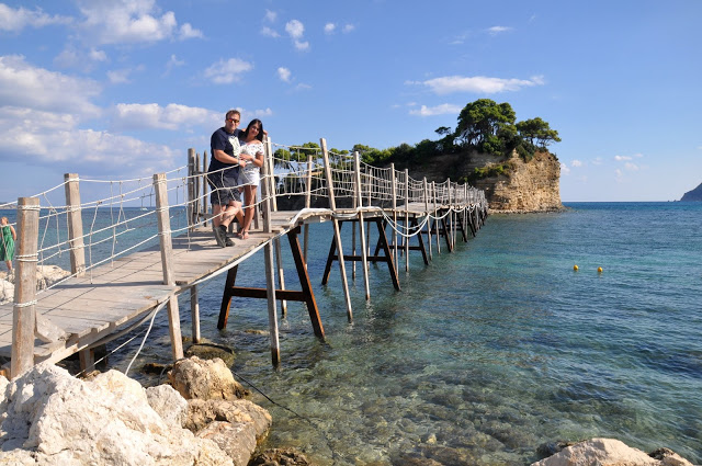 Niewielkie portowe miasteczko, położone nieopodal Laganas słynie z wysepki Cameo Island i prowadzącego do niej drewnianego mostku. Na wyspie mieści się bar, odbywają się to śluby i różne uroczystości. Kiedy tu przyjechaliśmy na mostu wisiała zatrzaśnięta kłódka i niestety nie udało nam się dojść na wyspę, ale już sam widok był wart odwiedzenia Agios Sostis