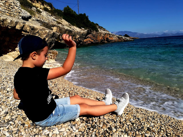 Przed wyjazdem dużo czytałam o Zakynthos i o plaży Banana Beach, jednak przyznam, że nie zrobiła na mnie jakiegoś wielkiego wrażenia. Plaża jak plaża. Ja się cieszę z radości Julcia i kąpieli w ciepluteńkiej, bardzo przyjemnej wodzie!