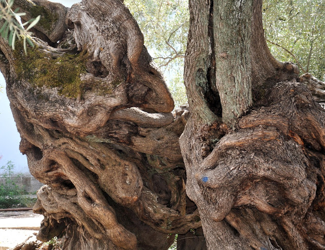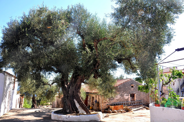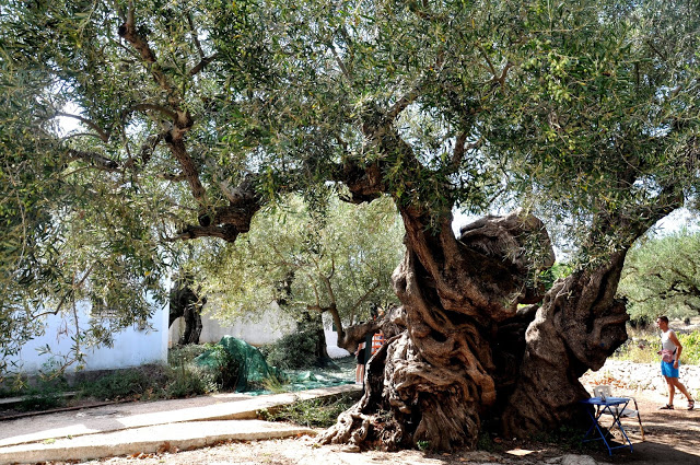 To wioska, która nie wyróżniałoby się niczym spośród innych greckich wiosek, gdyby nie fakt, że w samym jej centrum rośnie najstarsze greckie drzewo oliwne! Turyści zatrzymują się, żeby zrobić zdjęcie ponad 2500 letniego drzewa i my wcale nie byliśmy inni 😉