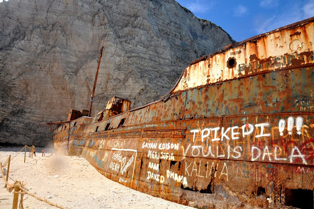 U stóp klifu stoi słynny wrak statku Panagiotis. Grecy mówią, że był to statek przemytników, którzy nielegalnie przemycali papierosy dla włoskiej mafii. W 1980 r. płynęli z Turcji i uciekając przed strażą przybrzeżną statek rozbił się i utknął na mieliźnie. Dziś podziwiają go turyści z całego świata.
