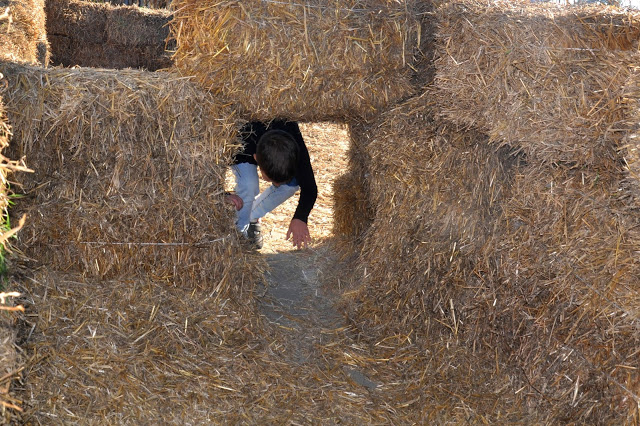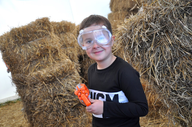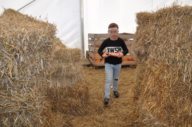 Poligon z kostek słomy i strzelanie do dyń z Nerfów