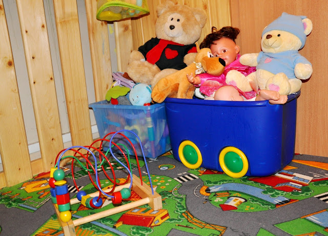 Dwa lata temu dla Julcia najważniejszym miejscem w pensjonacie była bawialnia. Pomimo tego, że nie jest duża, to jest w niej wszystko, co zainteresuje maluchy. Są tu duże miękkie klocki, pudełka z zabawkami, stolik do rysowania, tablica kredowa, kolorowe książeczki.