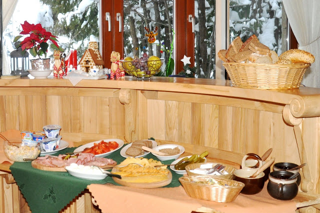 Śniadanie w formie bufetu umożliwia nam skomponowanie posiłku nawet dla bardzo wybrednego niejadka. Dostajemy świeże, pachnące pieczywo, płatki do mleka, dżemy, jogurty, wędliny, tradycyjne wędzone sery, sałatki, warzywa, ciepłą jajecznicę albo kiełbaski na gorąco. Do tego aromatyczna kawa, ciepłe kakao i duży wybór herbat smakowych 🙂