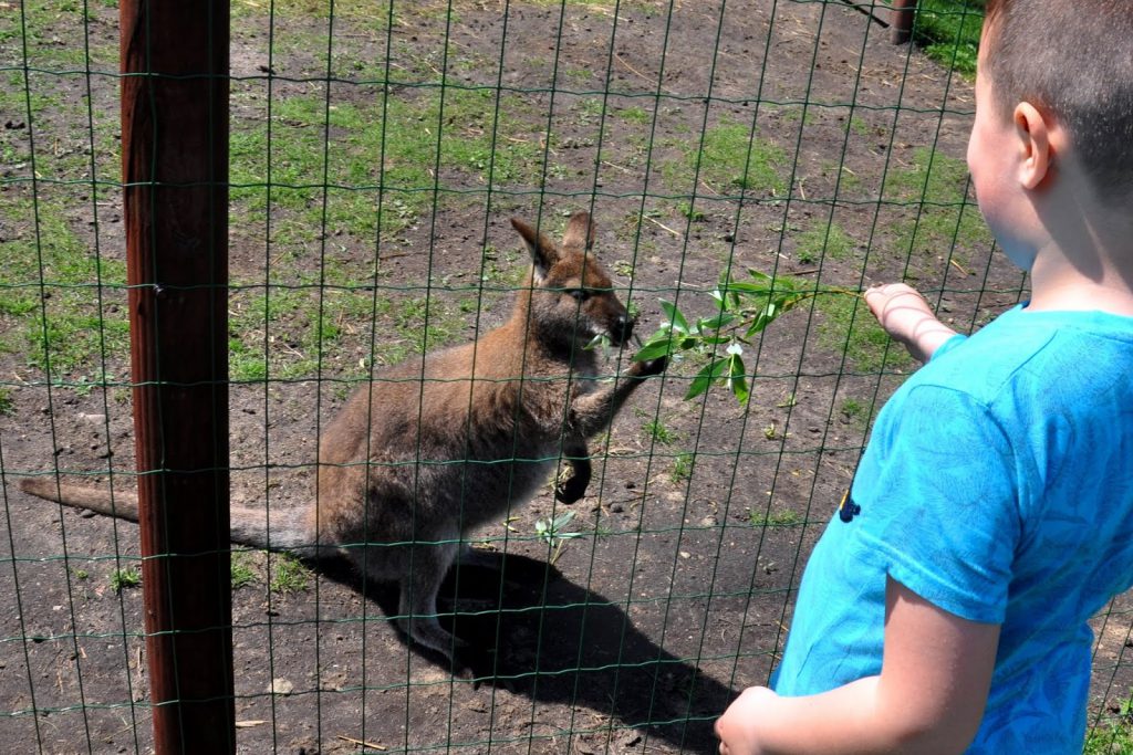 To właśnie tu spotkacie cudowne lemury, surykatki i małpki Sajmiri! To tu dzieci zobaczą kangura, nakarmią kozy, króliczki i małe, bardzo śmieszne świnki! Jeśli nie boicie się gadów możecie wejść do Gadolandii, gdzie nie tylko zobaczycie węże, kameleony i gekony, ale też będziecie mogli dotknąć pytona tygrysiego! Ja nie miałam tyle odwagi, Julcio też omijał gady szerokim łukiem, ale Tomek już pochwalił się odwagą 🙂
