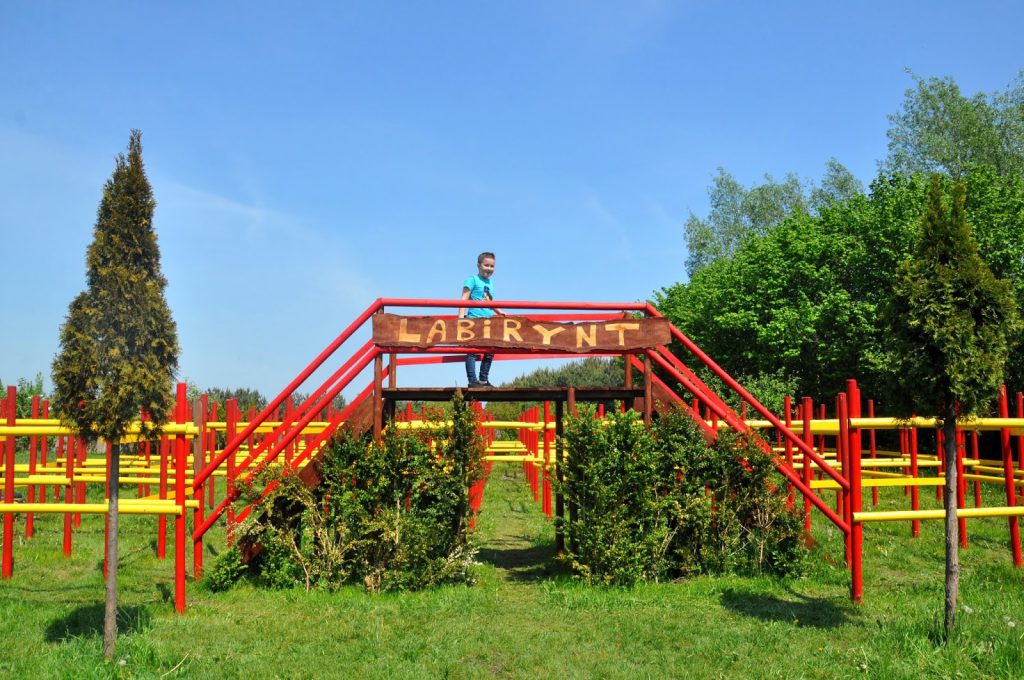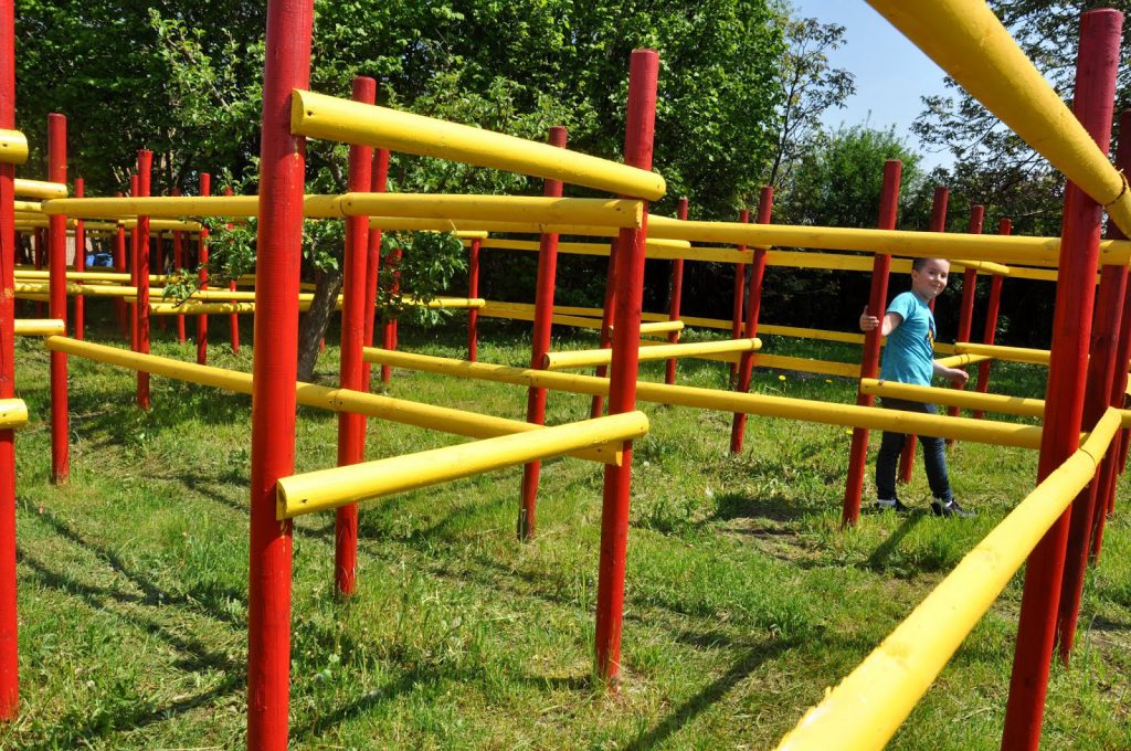 To nieduży, ale naprawdę fajny labirynt, w którym nie trudno się zgubić. To, że nie ma w nim zakrytych ścianek jest pewnego rodzaju utrudnieniem, ponieważ nawet patrząc z góry nie tak łatwo jest zapamiętać trasę. Dla starszaków (i rodziców) przejście labiryntu jest pewnego rodzaju wyzwaniem 🙂 Maluszki też z łatwością go przejdą, bo nawet jeśli nie zrobią tego „legalnie”, to przejdą pod konstrukcją.