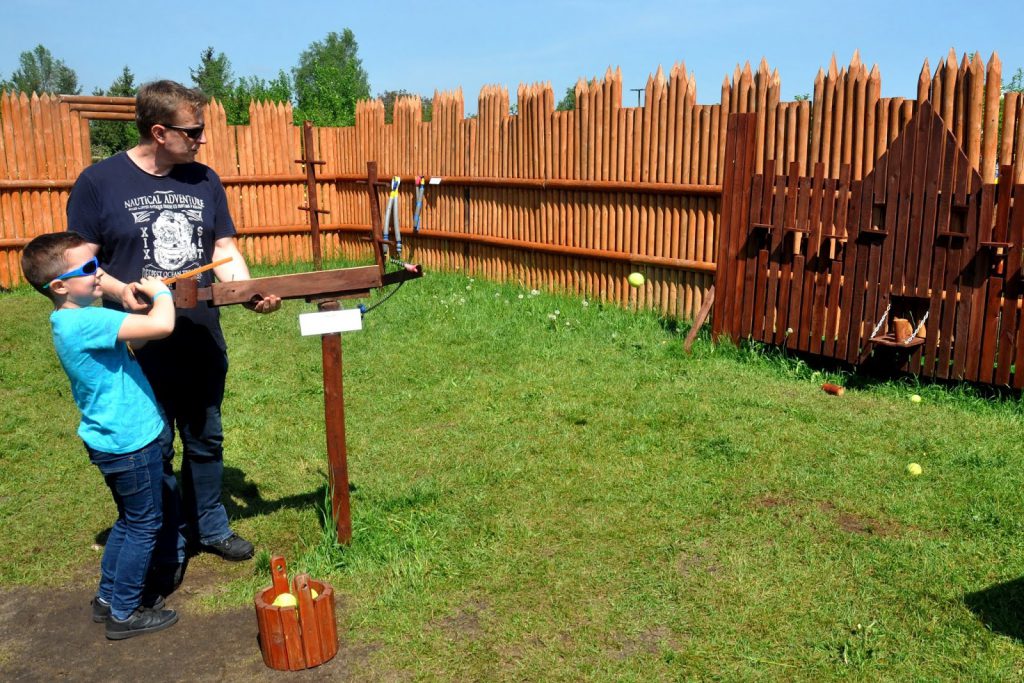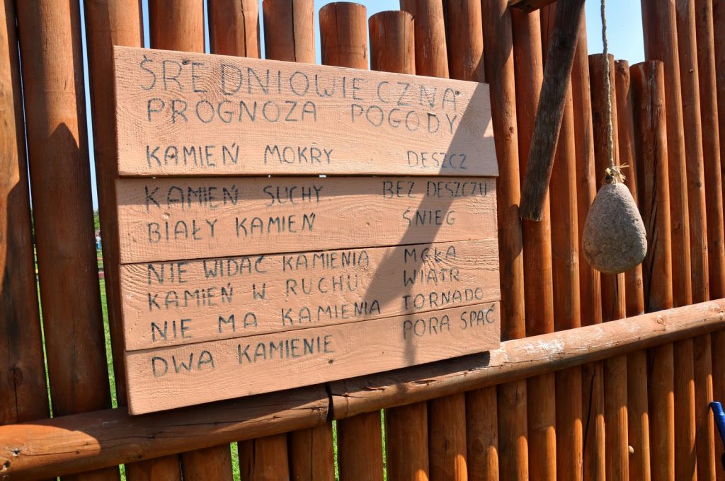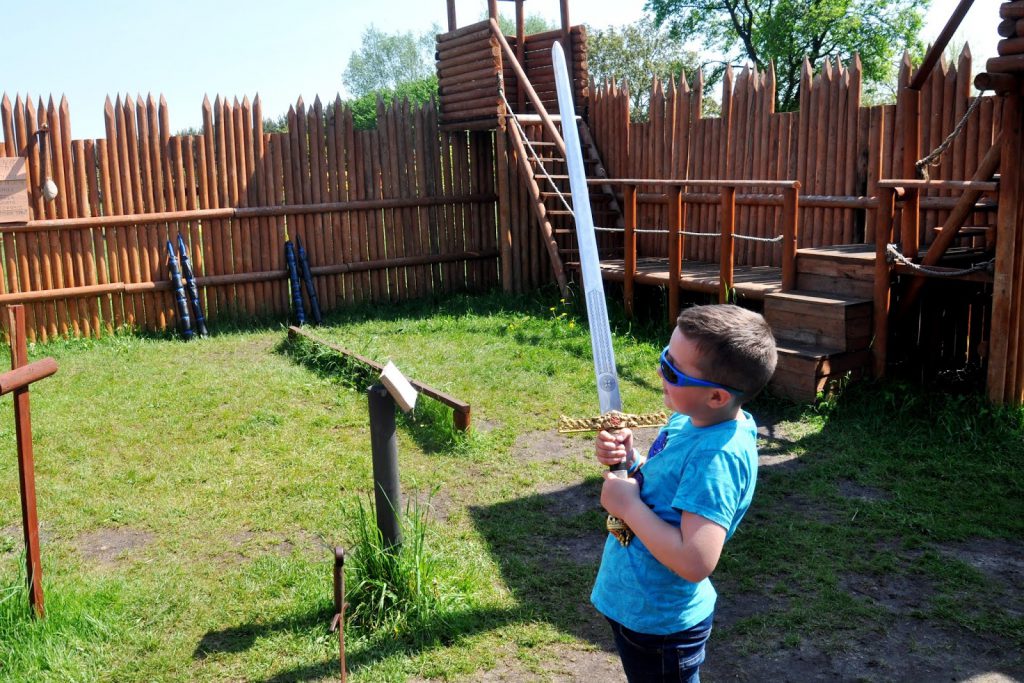 To miejsce, w którym dzieci mogą zagrać w dawne kręgle czy rzutki, mogą strzelać z łuku do tarczy, mogą nauczyć się władania mieczem, założyć strój króla, rycerza, a nawet Wikinga! Ja jestem pod ogromnym wrażeniem średniowiecznej prognozy pogody! Już planuję stworzyć taką na balkonie 🙂